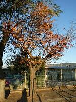 <学校の生き物たち紹介> 校庭西側のヤエザクラの葉も色付き始めました。