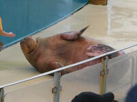 観覧者の中から大抜てきされた、我が白組団長の開会宣言で、海の動物たちのショーが始まりました!