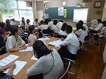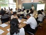 市教委生涯学習課から2名の講師にご来校いただき、導入の背景と、学校と地域の連携の推進について、講話とグループ協議を通してご指導いただきました。