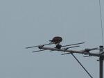久し振りの来校者(アンテナの上でえさをついばむチョウゲンボウ)