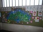 まずは、登校後、昇降口で、5年生に胸花を付けてもらい、飾り付けされた教室へ入りました。