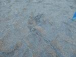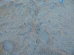 また、昨日、砂地を歩いたであろうセキレイの足跡が凍りついて、今朝まで残っていました。