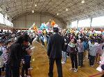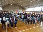 学校では、3校時に、1から3年生が体育館に集まって、お別れ式の練習を行いました。