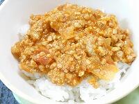 <今日の給食> ご飯(中華丼)・牛乳・中華丼の具・サンラータン・豆腐デザート和え