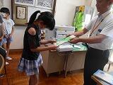 7月3日(月)の昼休みに校長室で自主学習ノート終了証が授与されました。これまで自主学習として取り組んできた結果、ノートが1冊終了した児童が次々と校長室を訪れ、校長先生から終了証を頂きました。それぞれの努力の積み重ねとしての自主学習ノートはどれも中身の濃い素晴らしい内容の取り組みばかりでした。これからもたくさんの人たちの頑張りを期待しています。