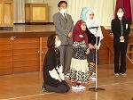 始めに、11/24から日本語の学習を進めていた転入生3姉妹の紹介を行いました。