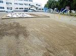 2つめは、北校庭に残されていたシーソーの土台部分とタイヤの撤去工事です。