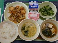 <今日の給食> ご飯・牛乳・家常(ジャーチャン)豆腐・やみつききゅうり・卵とわかめのスープ・白桃のジュレ