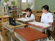 1年生、2年生教室を回ってみると静かな教室で学習をしていました。使ってすぐに静かさに驚き、感動していました。