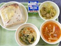 <今日の給食> グラタントースト・牛乳・もやしのカレーソテー・海の野菜と卵のスープ