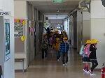 朝方降っていた小雨もやみ、子どもたちは、傘をささずに登校できました。