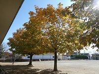 <学校の生き物たち紹介> 校庭西側のヤエザクラの葉も色付き始めました。