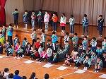 学校では、3・4校時に、生活科学習の一環として、1・2年生の交流学習が体育館で行われました。