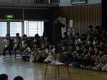 学校では、業間活動の時間に、体育館において、6年生による学年発表が行われました。