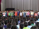 始めに、全校児童で、「南の島のハメハメハ大王」の歌を合唱しました。