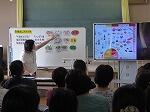 今年度から、給食センターで卵アレルギー対応食を調理して提供していることや、朝食は、「目覚ましスイッチ」であったり、勉強や運動のエネルギー源になっていたりすることなどを教えていただきました。
