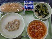 <今日の給食> コッペパン(ツナサンド)・牛乳・ツナサンドの具・海藻サラダ・ミネストローネ