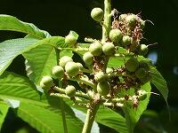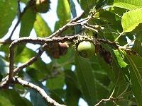 <学校の生き物たち紹介> 体育館北側の観察園で、実を付け始めたクヌギ。
