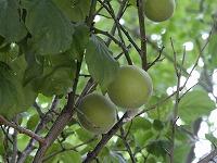 <学校の生き物たち紹介> 校庭南西角の雑木園で、ウメが大きな青梅を実らせています。
