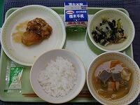 <今日の給食> ご飯・牛乳・チキン南蛮・ノンエッグタルタルソース・磯酢和え・具だくさん味噌汁