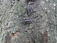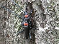 <学校の生き物たち紹介> 体育館北側のソメイヨシノの幹で発見した特定外来生物のクビアカツヤカミキリ。