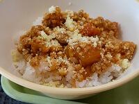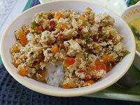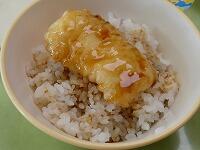 <今日の給食> ご飯(お魚丼)・牛乳・お魚丼の具・カボチャの挽肉フライ・冬瓜と鶏肉のスープ・シークヮーサーゼリー