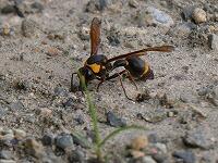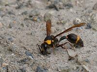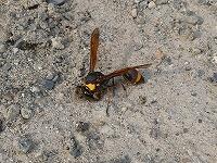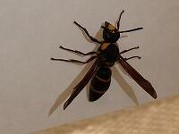 <学校の生き物たち紹介> 校長室のカーテンの陰に迷い込んでいたオオフタオビドロバチ。