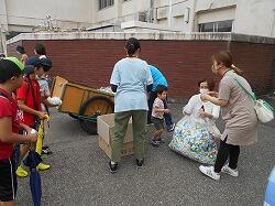 7月5日(水)の朝の登校にあわせて、PTAによる資源ごみ回収とあいさつ運動が行われました。資源ごみ回収は2年生の学年委員さん、あいさつ運動は5年生の学年委員さんにお世話になりました。児童は、今回もたくさんのアルミ缶やペットボトルキャップを持って登校し、6月と7月の2回の回収で、一時保管場所も一杯になりました。地域の皆様からも新聞紙やダンボール等を運んでいただき、ありがとうございました。暑い日が続きやや元気が失われていた児童のあいさつでしたが、正門と西門に委員さんが並んであいさつをしてくれ、明るく元気なあいさつが交わされていました。次回の資源ごみ回収とあいさつ運動は9月6日(水)を予定しています。ご協力をどうぞよろしくお願いします。