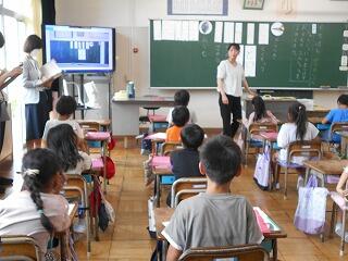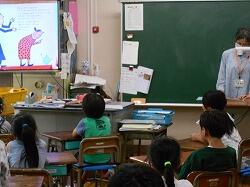 7月5日(水)の朝の活動時間に、読み聞かせボランティアの皆様が低学年を対象に読み聞かせをしてくださいました。紙芝居や大画面TVに本を映したりしながらの読み聞かせでした。子どもたちをお話の世界に引き込む読み聞かせをありがとうございました。