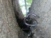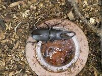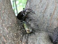 <学校の生き物たち紹介> 西門脇のシラカシの樹液に集まっていたノコギリクワガタとカナブン。