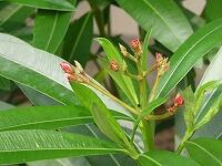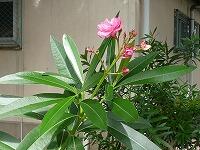 <学校の生き物たち紹介> 体育館北側の観察園で、ようやく花を咲かせ始めたキョウチクトウ。