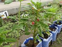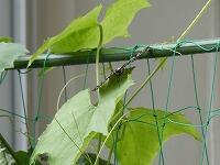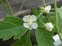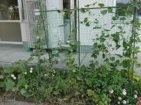 <学校の生き物たち紹介> 保健室前のプランターで、花を咲かせたり、実を実らせたりしているフウセンカズラ。