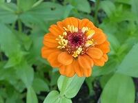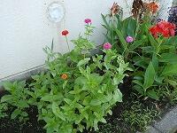 <学校の生き物たち紹介> 図書室前の花壇で、色とりどりの花を咲かせ始めたヒャクニチソウ。