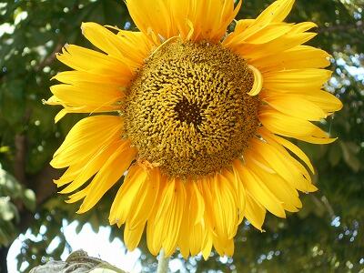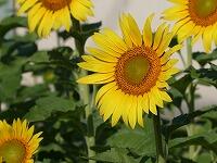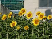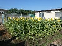<学校の生き物たち紹介> プール北側のヒマワリ畑や理科室前の花壇で、ヒマワリが花を咲かせています。