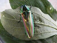 昨日、学校運営協議会委員長の金山様が、カブトムシやカタツムリに続いて、昆虫界の宝石ともいわれるタマムシ(ヤマトタマムシ)2匹を届けてくださいました。