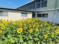 <学校の生き物たち紹介> 3年生が育てているヒマワリが開花し始めました。