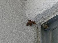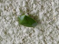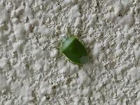 <学校の生き物たち紹介> 出勤時、玄関前の壁で出会ったツヤアオカメムシ。
