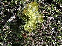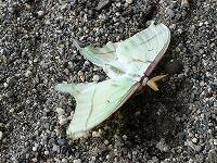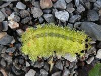 <学校の生き物たち紹介> 冬ごもりの準備のためにソメイヨシノの幹のコケの隙間に潜り込んでいるヒロヘリアオイラガの幼虫。