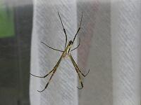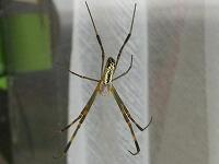 <学校の生き物たち紹介> 校長室南側出入り口の窓ガラスに棲み着いたジョロウグモが、脱皮をしていました。
