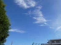 今朝は、雲が多く、その隙間から秋の青空が顔をのぞかせる下での登校でした。