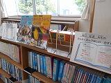 先生方の読み聞かせ 図書室に掲示された「おすすめの本」コーナー