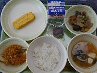 <今日の給食> 彼岸メニュー ご飯・牛乳・厚焼き卵・筑前煮・きのこ汁・おはぎ