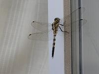 <学校の生き物たち紹介> 校長室南側の窓枠で羽を休めているアキアカネ。