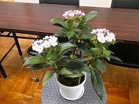 <学校の生き物たち紹介> 校長室のロの字型のテーブルの真ん中に、においザクラとも言われるルクリアの鉢植えが置いてあり、ほんのりあま~い香りを漂わせています。