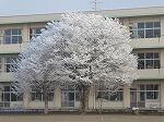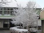 昨夜の降雪により、校庭の樹木が、まるで満開の花を咲かせたかのように雪化粧した姿を見せてくれました。