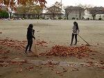 そのような中、6年生がボランティア活動として、校庭のたくさんの落ち葉を、毎朝、掃き集めてくれています。