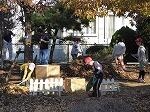 それぞれの清掃場所の重点に従って、廊下や階段の黒ずみをこすり落としたり、落ち葉はきの仕上げをしたりする様子が見られました。