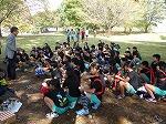 きれいな青空の下、おうちの方につくっていただいたお弁当を嬉しそうに、おいしそうに食べていました。