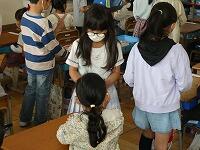 1年生の朝の準備を、6年生が手伝に来てくれました。