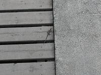 <学校の生き物たち紹介> 図書室北側壁面のスズメ。この後、下の穴から、パイプの中に入っていきました。